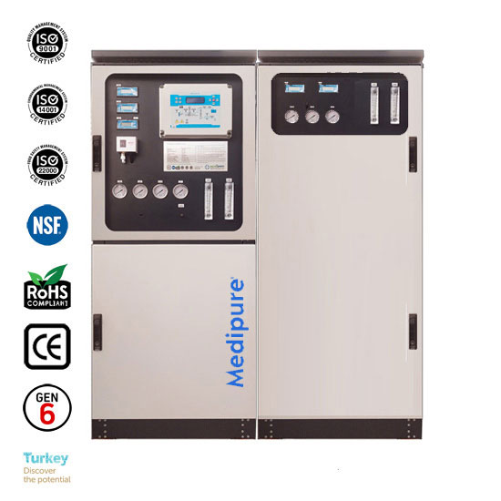 • Medipure XC-9790 Mobil Ultra Saf Su Cihazı; Mikro filtreleme, Karbon Filtreleme, Ozmotik demineralizasyon , Quadplex deiyonizasyon, High Boost ,Direct Flow, Auto Flushing, PLC AI ve 254 nm UV ışın gücü, Çift katmanlı saflaştırma Ultra filtreleme gibi opsiyonel özellikleri tek cihazda barındıran (ALL IN ONE) Dünya' nın ilk ve tek 6. nesil ultra saf su cihazıdır. Her türlü ortam şartında ve koşulda şebeke suyu değeri üzerinden %99,99 performans sağladığı, endüstri uygulamaları, medikal ve klinik uygulamalar ile üretim tesislerinde ispatlanmıştır.