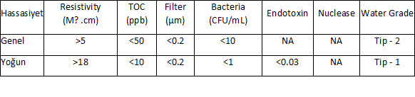 Mikrobiyolojik uygulamanız için doğru su türünü kullanmak çok önemlidir. Tip II su, bakteri hücre kültürleri için uygundur. Organik, Tarım, Ziraat, İleri Tıp ve Çevre uygulamalarınız için kontaminasyon içermeyen Tip-1 Ultra Saf Su kullanılması Akreditasyon ve Validasyon açısından gerekmektedir. |